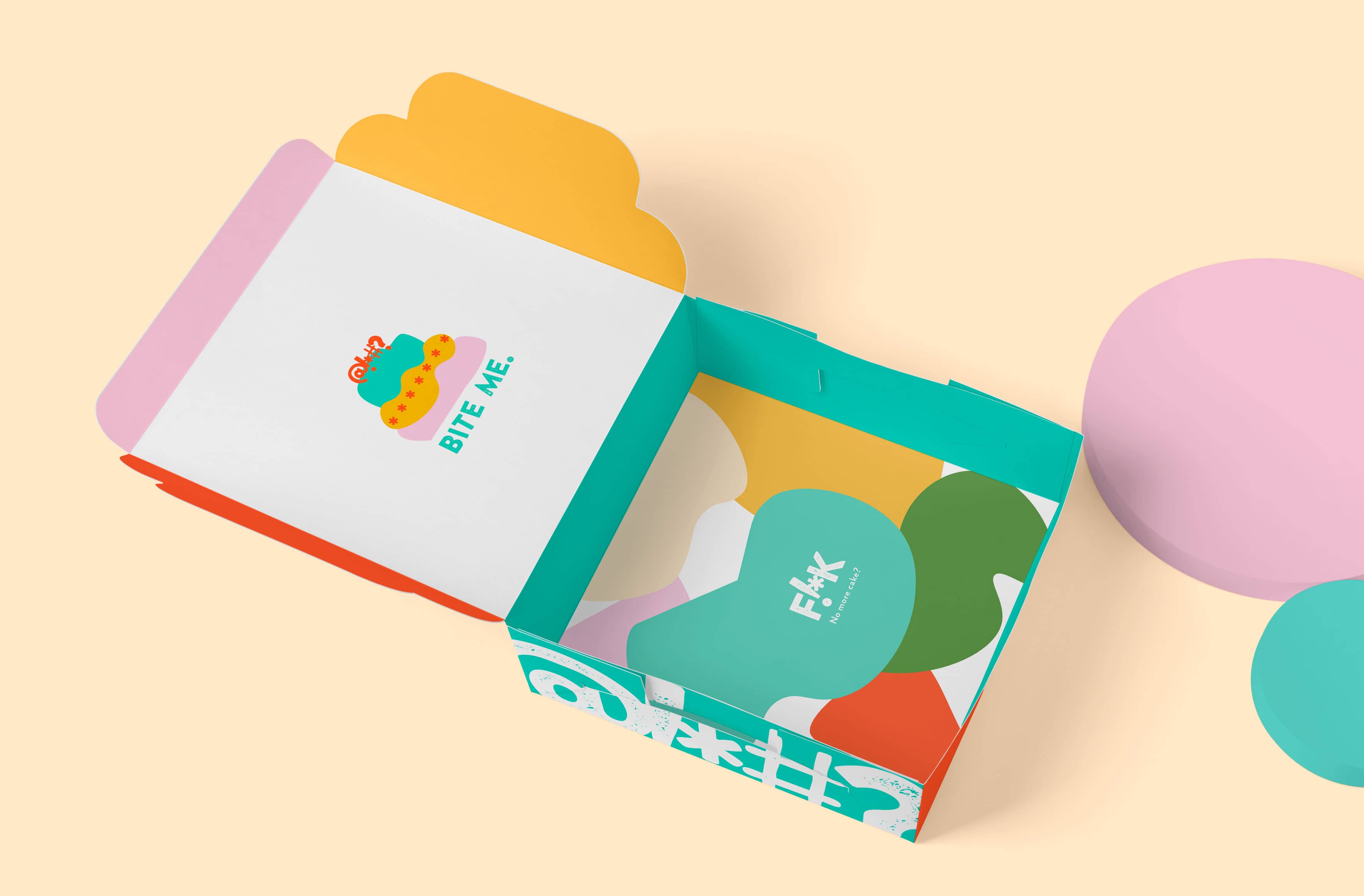 Bite Me Cakes is a bakery in Portland that uses purposeful chaos, wit and playful surprises to create cakes that speak to social justice causes and anyone that has a love of cake. The new brand identity has the same bright and punchy language and uses colorful elements to set themselves apart from the rest of the baking world.